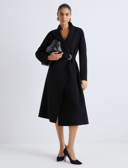 Manteau croisé en tissu double – NOIR