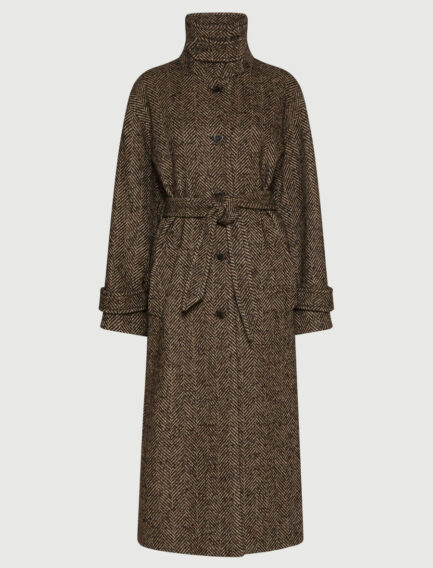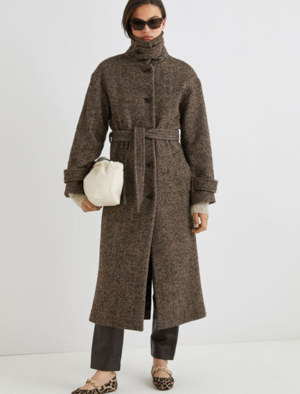 Manteau droit en laine mélangée à chevrons – MARRON