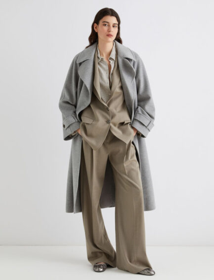 Manteau en popeline de laine et cachemire – GRIS MÉLANGE