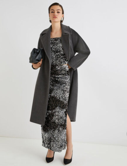 Manteau croisé en toile de castor – GRIS MÉLANGE