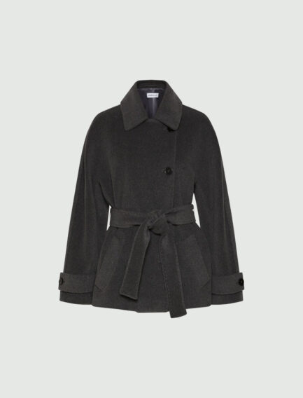 Veste épaisse ceinturée en pure laine – GRIS MÉLANGE