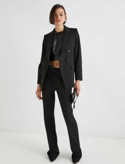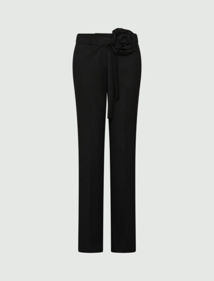 Pantalon évasé avec ceinture ornée de fleurs – NOIR