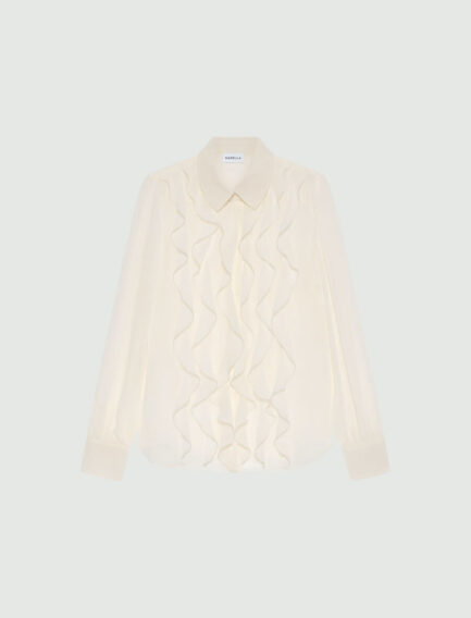 Chemise en georgette à volants – BLANC