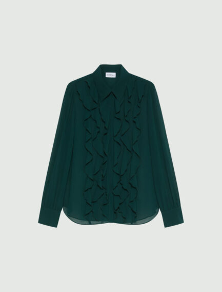 Chemise en georgette à volants – VERT FONCÉ