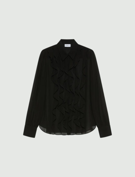 Chemise en georgette à volants – NOIRE