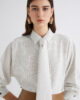Un style bon-ton et des formes contemporaines en parfaite harmonie : ce nouveau chemisier arbore un élégant tissu sergé brillant et une coupe raffinée et impeccable, avec une taille courte pour une silhouette résolument moderne.