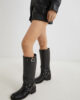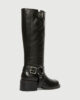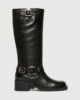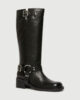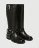 Affirmez votre côté rebelle avec ces bottines motardes en cuir. Leurs détails bruts créent un contraste sophistiqué, qu’elles soient portées avec une jupe mi-mollet en soie ou une robe plus romantique.