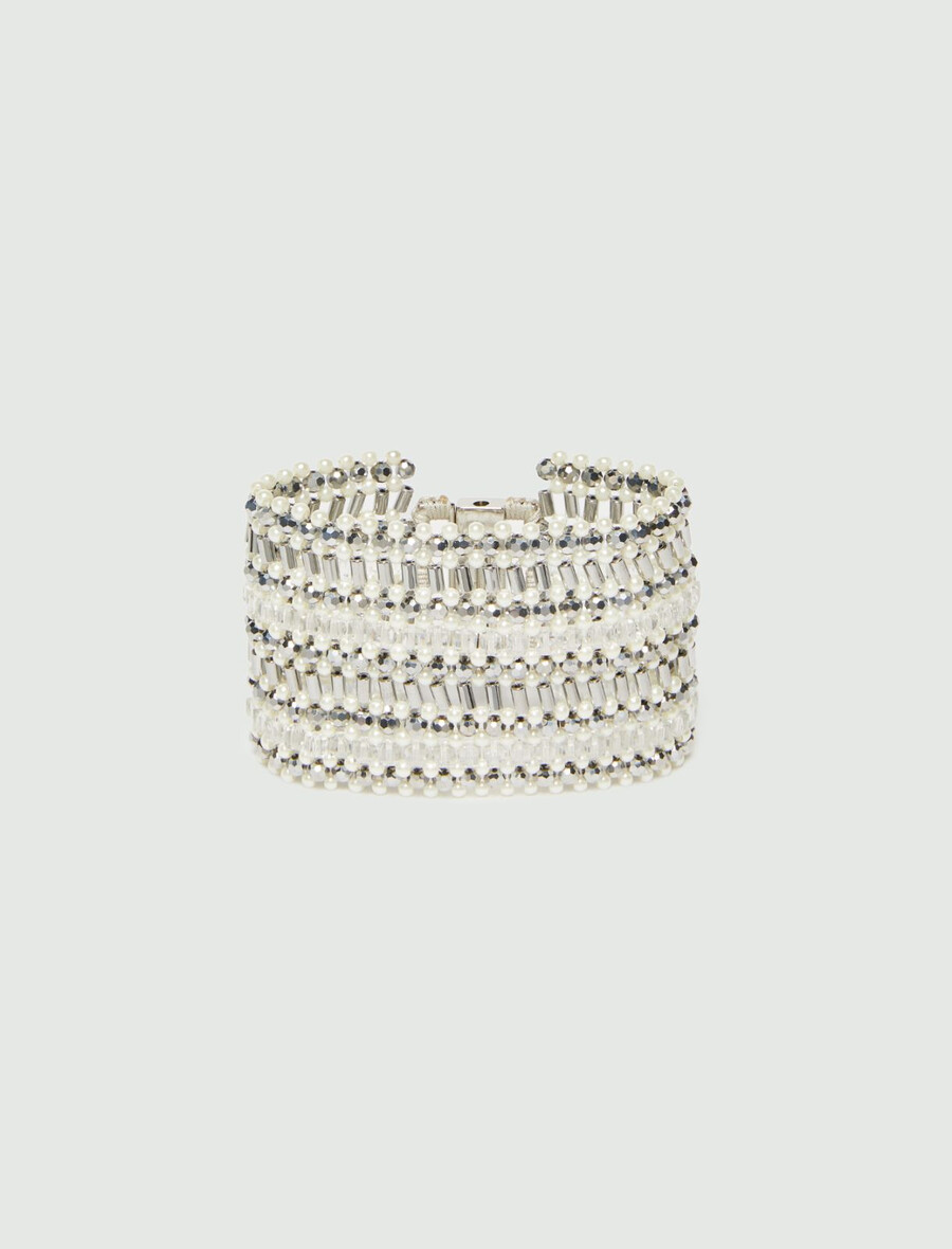 - Bracelet orné de perles transparentes et argentées