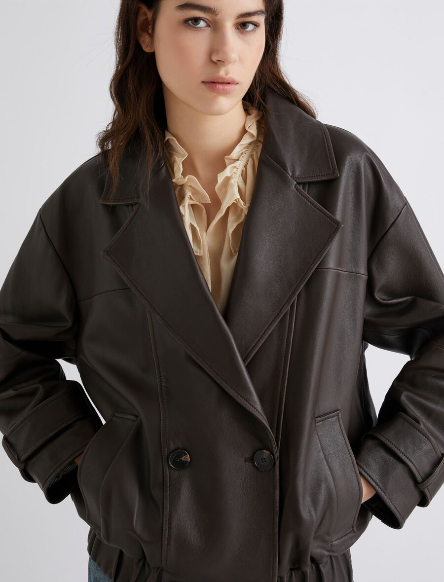 Un incontournable de la saison froide : ce caban en cuir arbore une coupe oversize et une fermeture croisée pour une allure sophistiquée. Doublé pour un confort optimal.