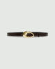 La boucle à la coupe organique est le détail qui distingue cette ceinture en cuir. Elle se marie parfaitement avec un jean et rehaussera un pantalon tailleur.