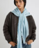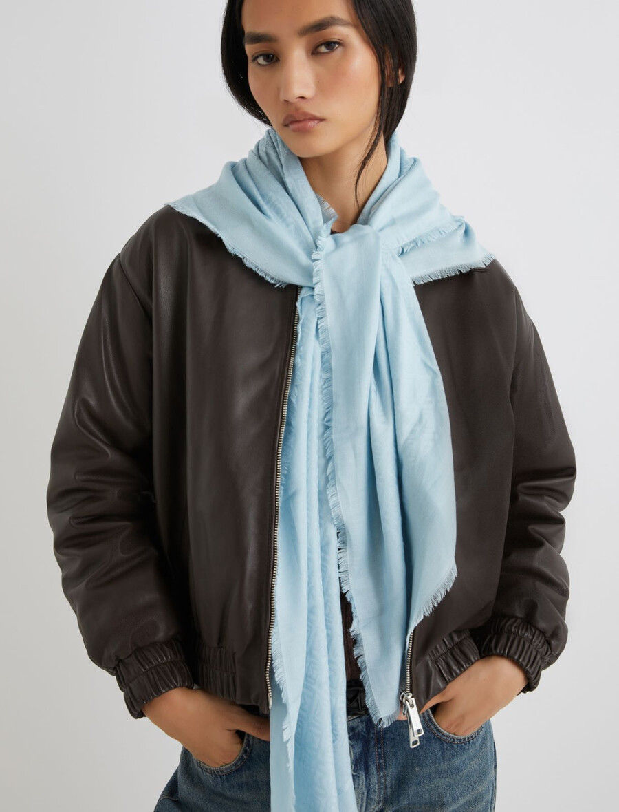 Cette étole ultra-légère, proposée dans un bleu clair éclatant, enveloppera élégamment vos épaules et votre décolleté.