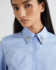 Quand la fonctionnalité rencontre l’éclat des cristaux, un petit chef-d’œuvre glamour voit le jour. À l’image de cette chemise slim en popeline de pur coton, ornée de strass et de broderies aux pointes du col.