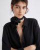 • Ruban orné d’une fleur au col.