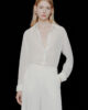 Une version contemporaine de la chemise masculine classique, confectionnée en crêpe georgette pour une élégance intemporelle. Sa coupe essentielle est rehaussée par des boutons de manchette ornés de bijoux, qui apportent une touche de brillance.