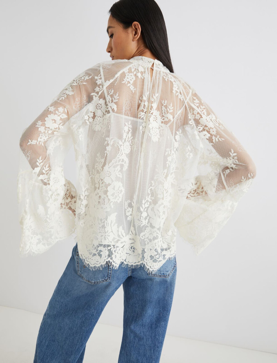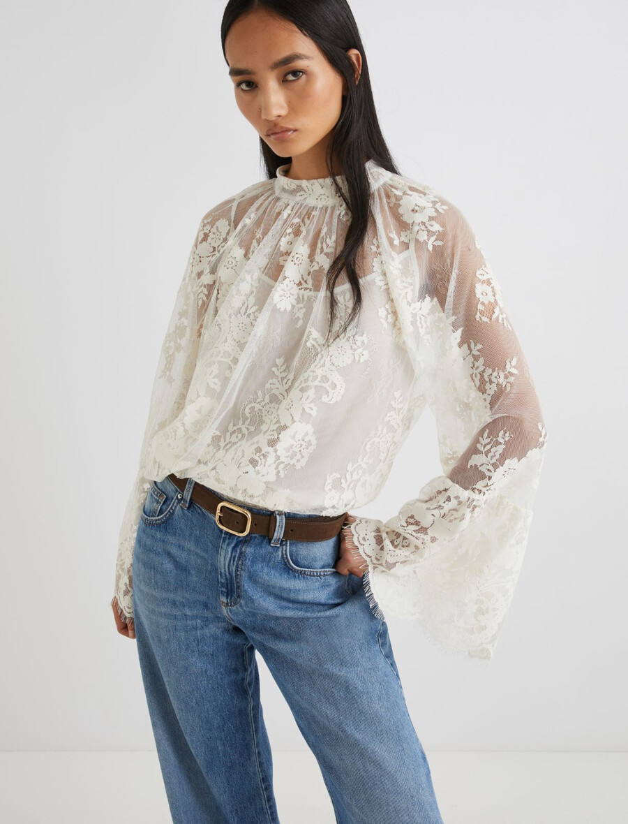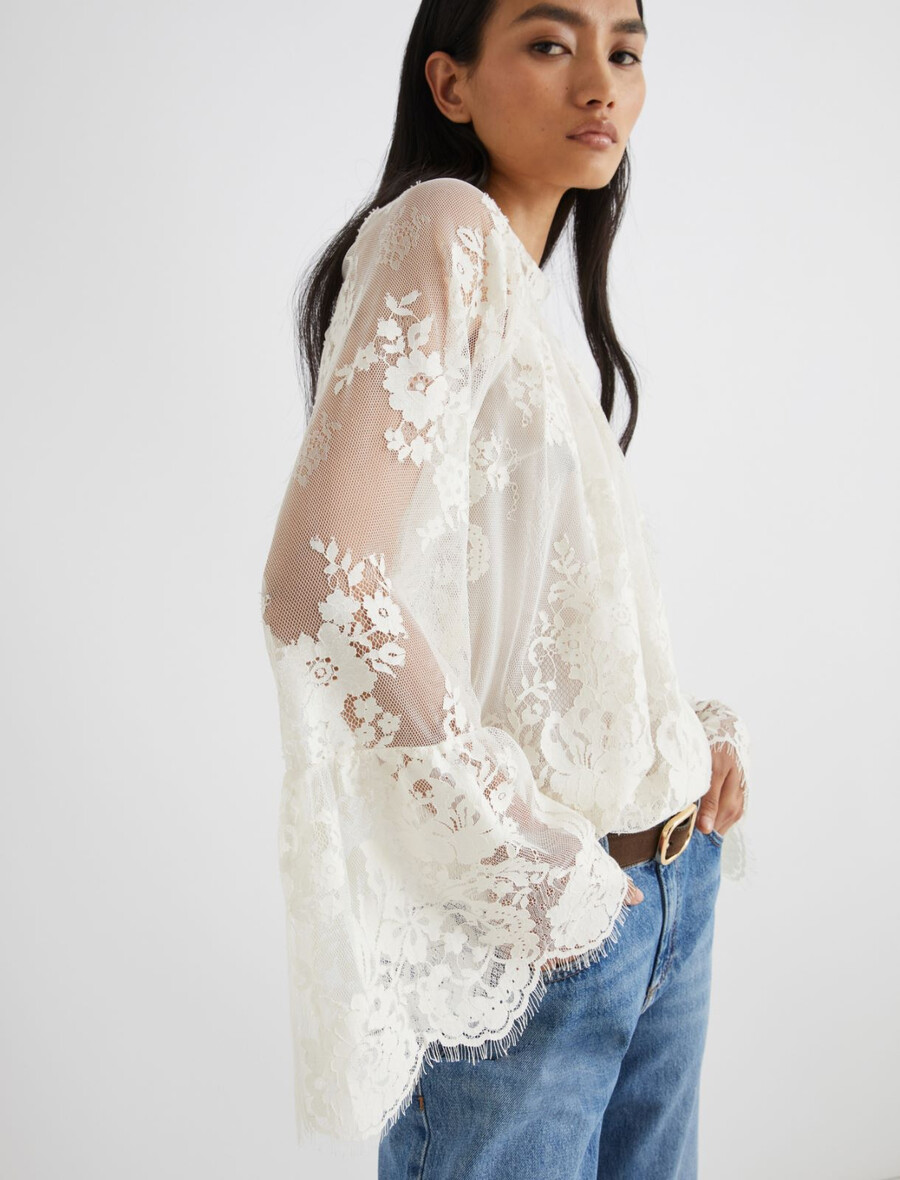 Envie d’un style bohème parfait au quotidien ? Chaque instant devient spécial avec ce chemisier, grâce à sa dentelle de Chantilly et à sa coupe ample au niveau du buste et des manches. Osez un look corsaire subtilement romantique avec un jean.