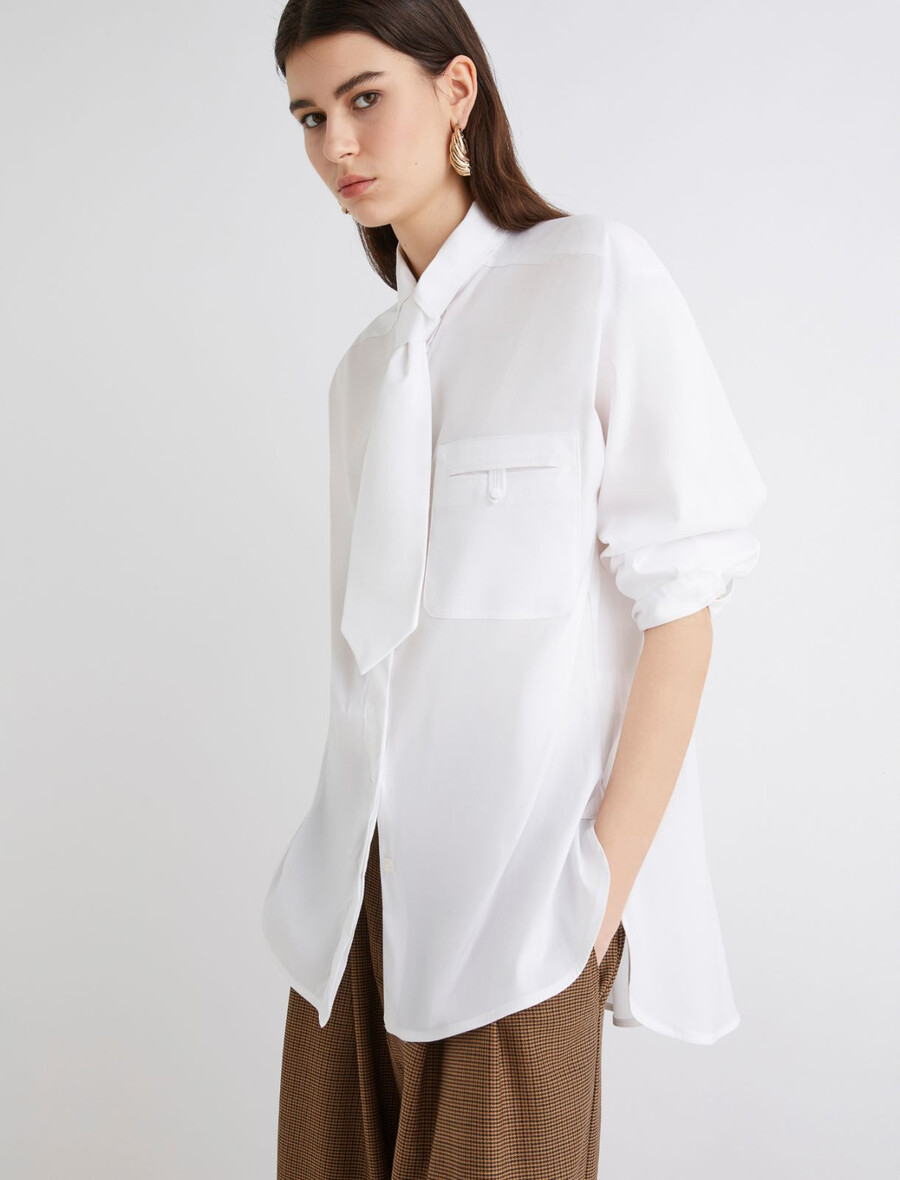 Jouez avec la séduction et mélangez les genres : cette chemise en popeline deviendra la pièce maîtresse de vos tenues ; ajoutez la cravate assortie pour une touche finale parfaite.