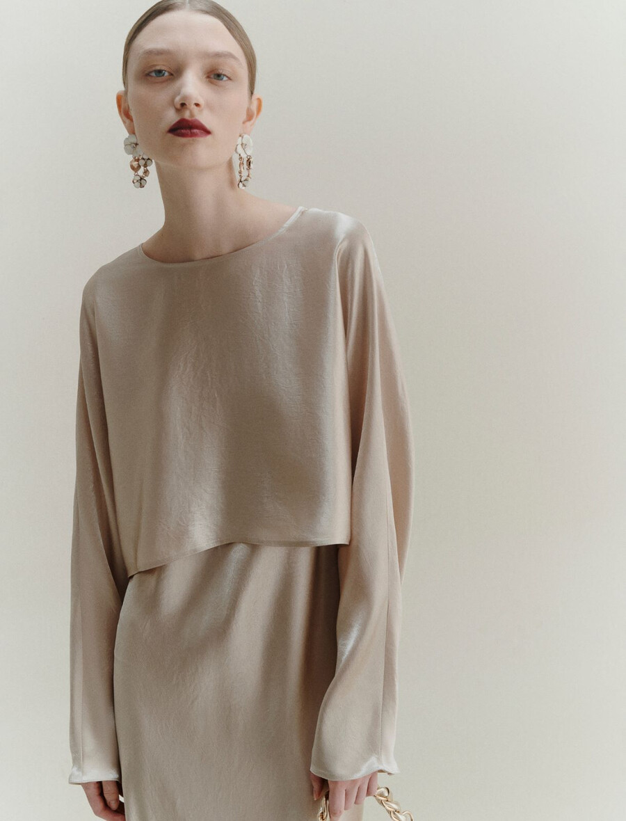 Chemisier en satin – NATUREL