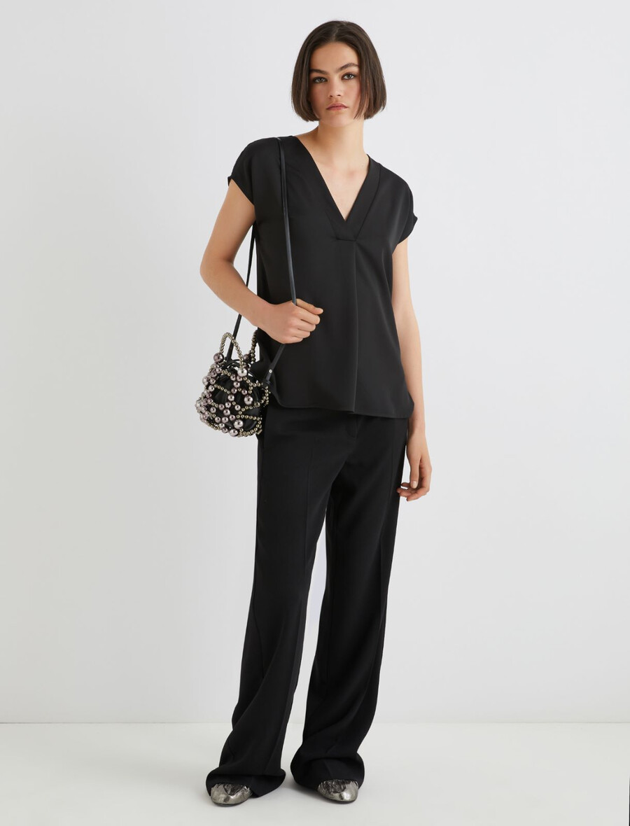 Chemisier fluide en satin noir