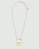 Ce collier, doté d’un cordon ajustable et d’une grande fleur en émail blanc évoquant un camélia, peut se porter long ou enroulé deux fois autour du cou. Le cristal central scintillera au soleil et au clair de lune.