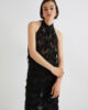 Mettez vos épaules en valeur avec ce top dos nu sans manches. Son détail en fil coupé à franges et sa matière georgette transparente lui confèrent un style unique. Ce top se marie parfaitement avec la jupe assortie pour une tenue de soirée idéale.