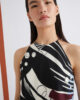 Un nouveau top évasé à l’allure sophistiquée et au col halter pour un style épaules dénudées. À porter avec la jupe assortie ou même un jean et un pantalon tailleur.