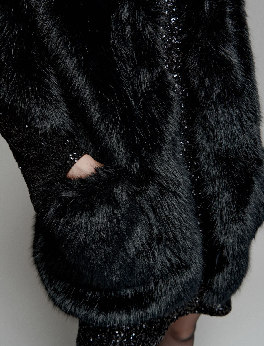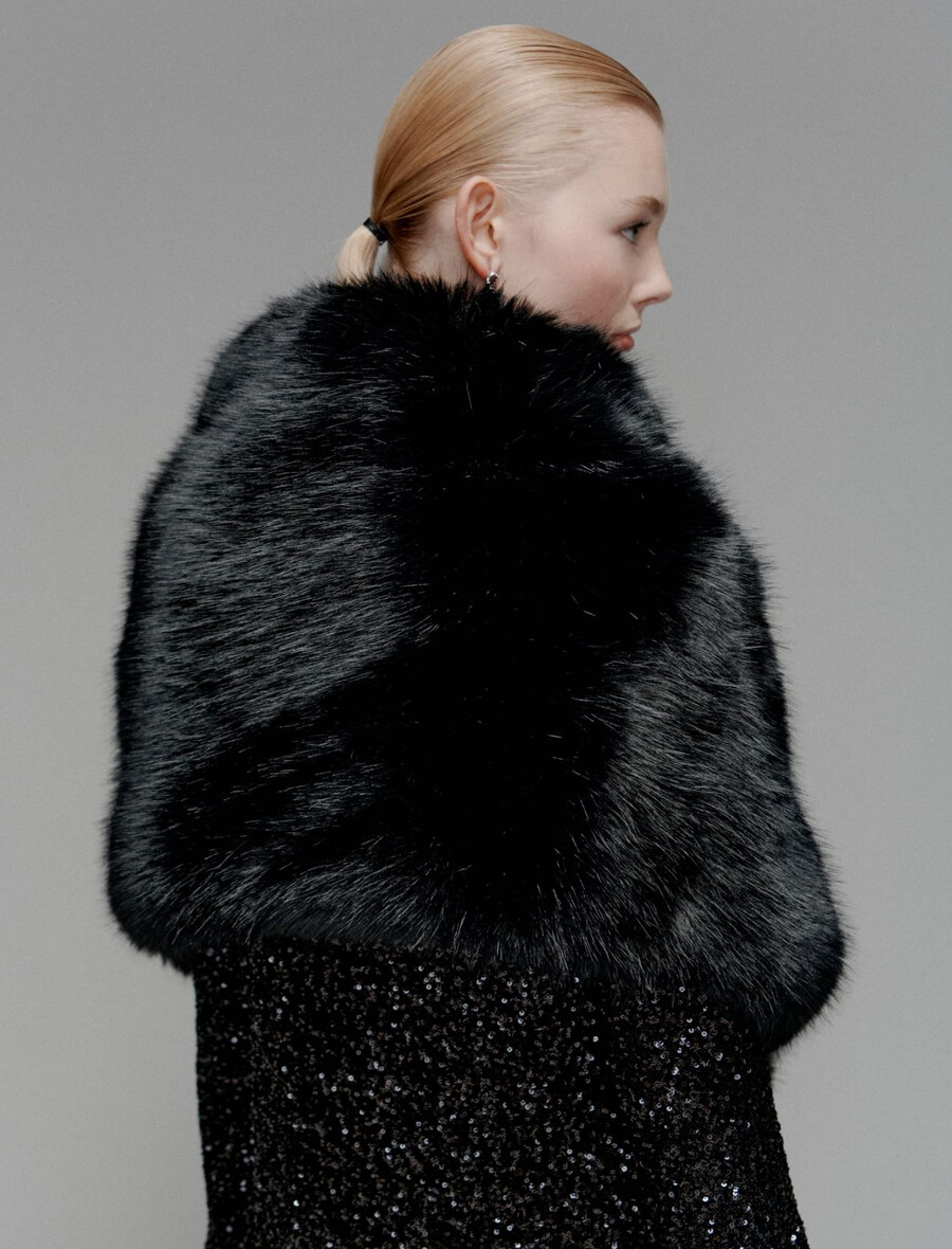 Une étole pas comme les autres. Découvrez cette nouvelle version chaude et enveloppante en tissu effet fourrure, agrémentée de poches plaquées à l’ourlet pour une touche à la fois polyvalente et ludique.
