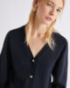 Coupe ajustée, col en V, épaules et poignets légèrement bouffants : ce modèle revisité insuffle une nouvelle vie au cardigan. À porter avec un pantalon décontracté pour une tenue surprenante.