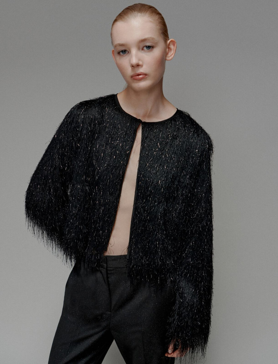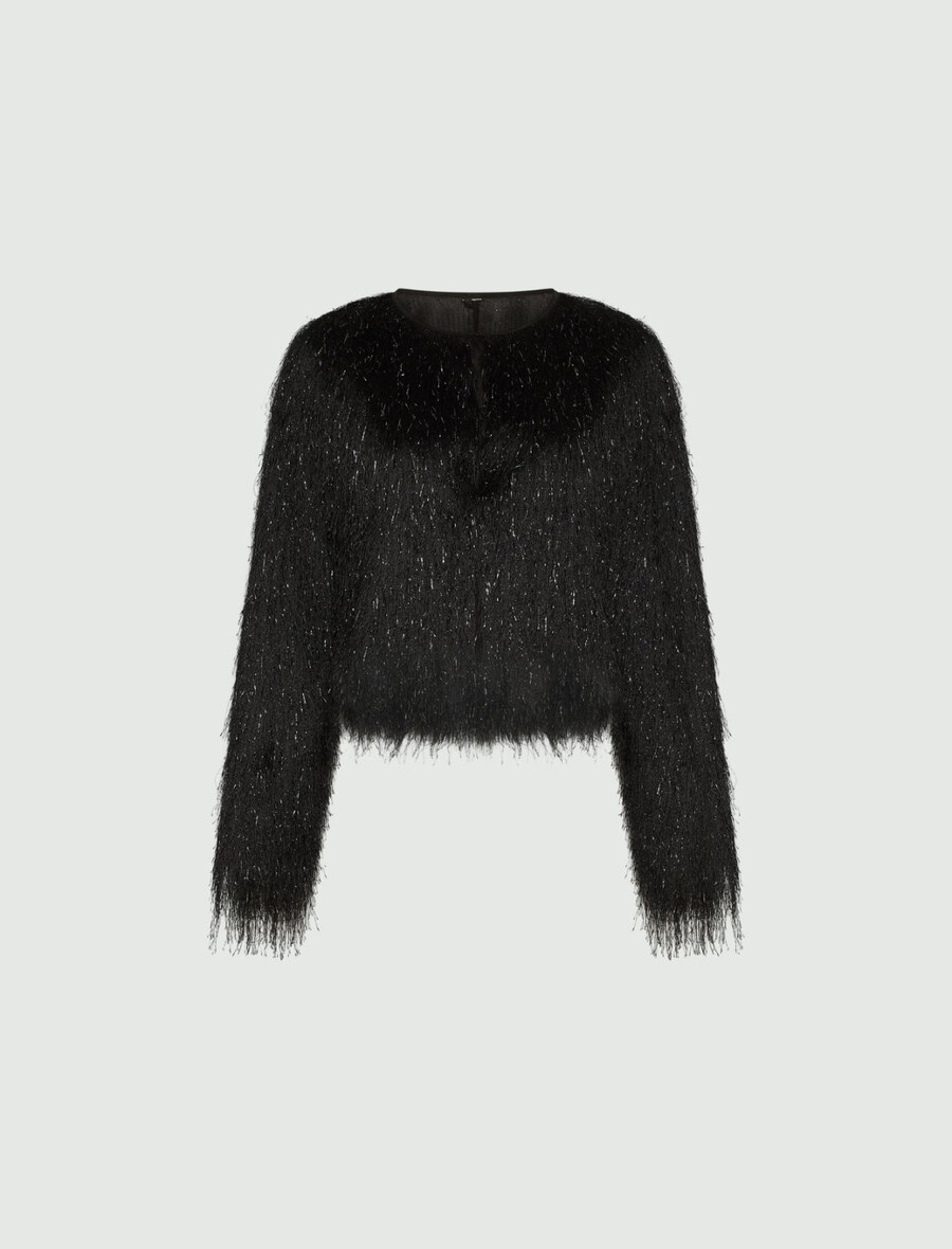 Le motif à franges distinctif confère une allure festive à ce cardigan en jersey. Portez-le avec un débardeur et un pantalon évasé pour un look de soirée surprenant.