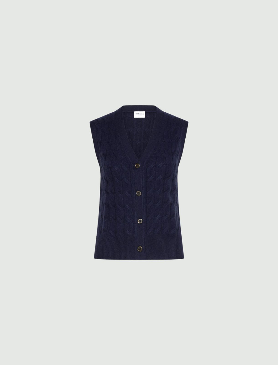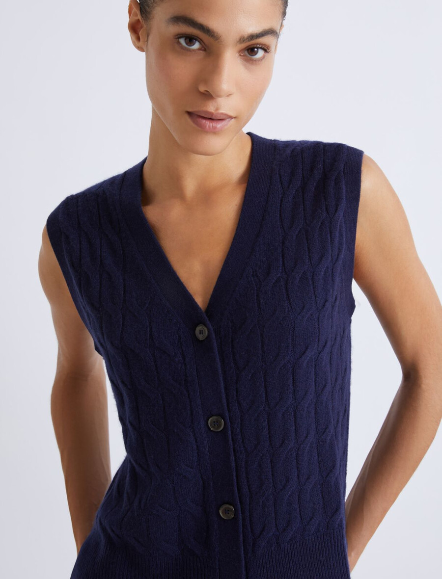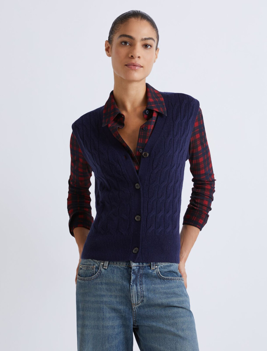 Porté ample sur une chemise et parfaitement associé au cardigan assorti : ce gilet en laine et cachemire est polyvalent et tendance, exactement comme vous l’aimez.