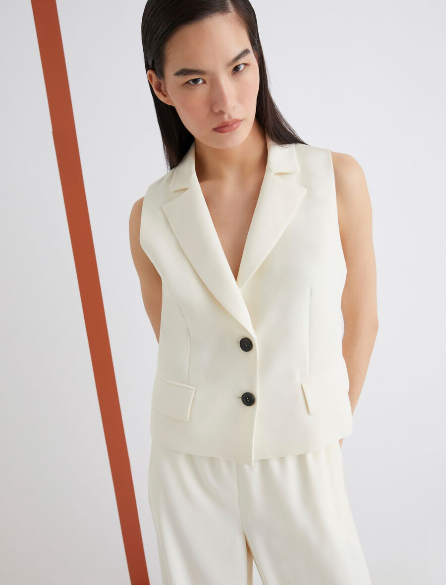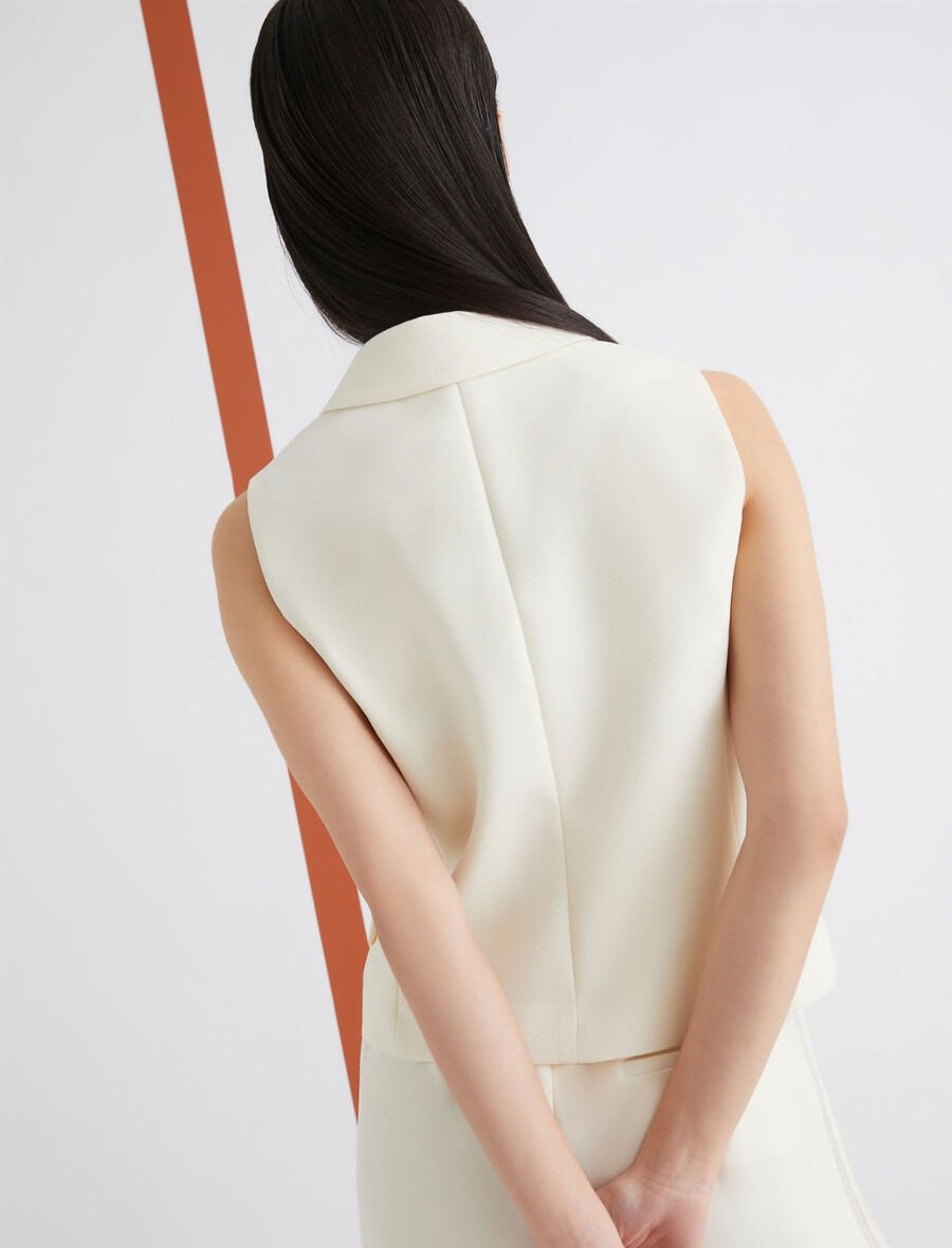 Un indispensable de votre garde-robe : ce gilet se porte seul, comme un top, ou superposé à d’autres vêtements. Son élégance intemporelle se révèle même lors d’occasions spéciales.