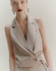 Un col à revers ultra-élégant et un design croisé féminin : ce nouveau modèle de gilet a tout pour plaire. Confectionné en satin brillant pour un résultat stylé, même en toute décontraction.