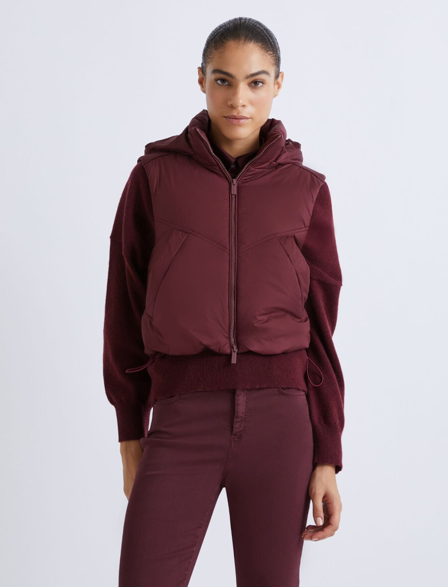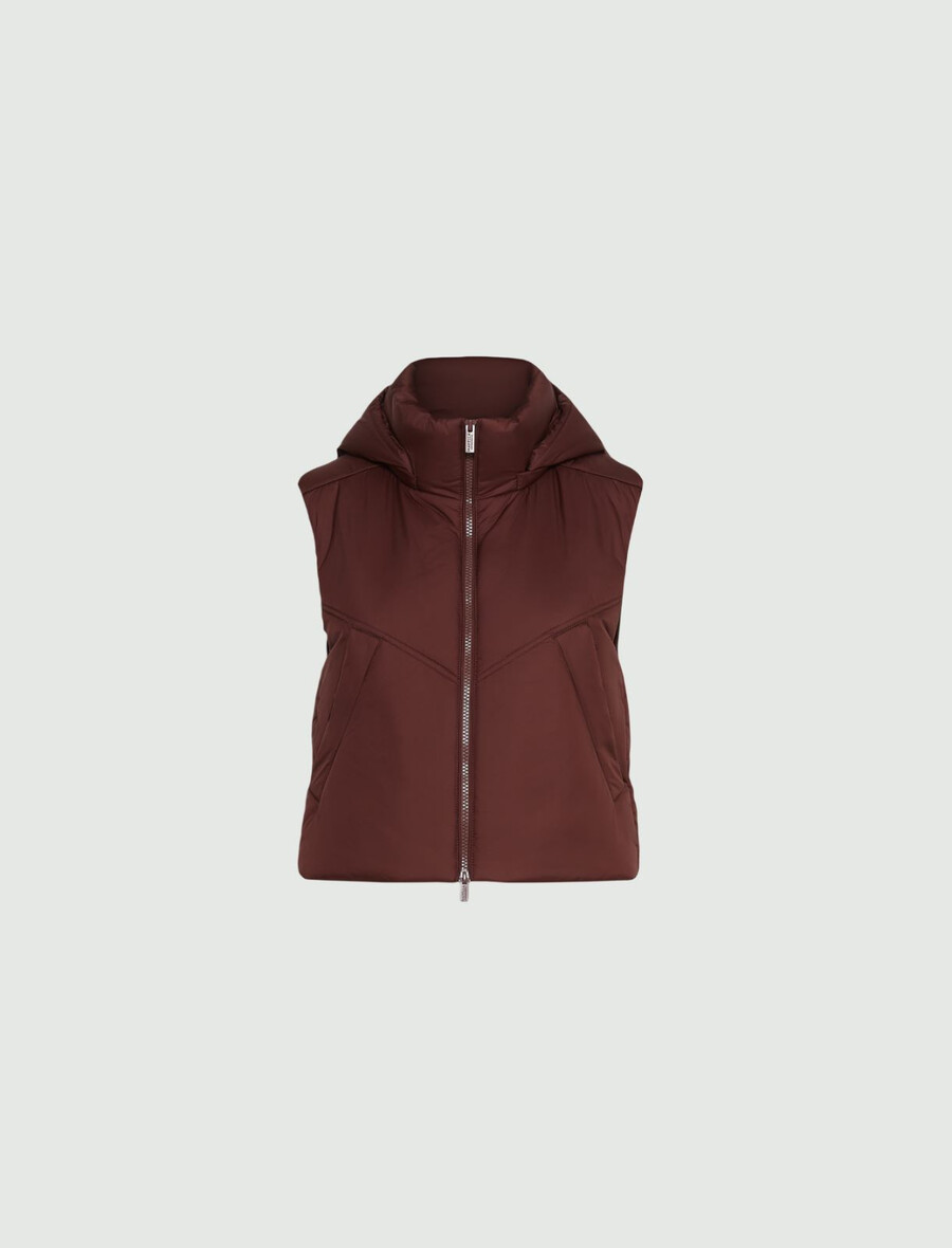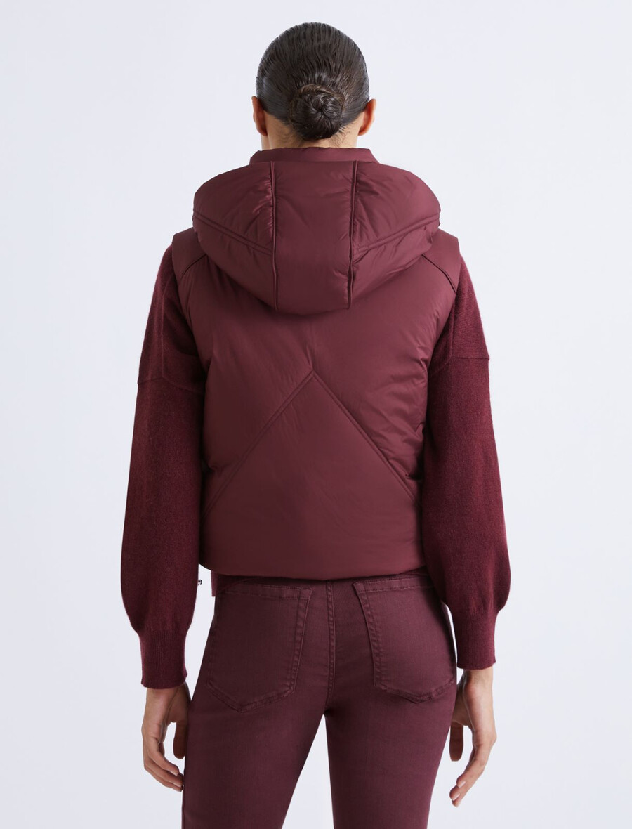 - Gilet en tissu technique matelassé et rembourré, orné de surpiqûres et de passepoils.
