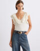 Ce top sans manches ultra-féminin est orné de volants qui mettent en valeur l’encolure et les épaules. Portez-le avec un jean et des ballerines pour une tenue chic et facile à reproduire à l’infini.
