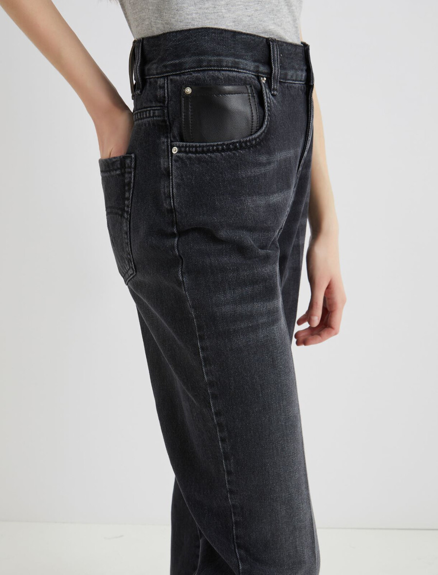 - Surpiqûres brodées sur les poches arrière et étiquette en cuir griffée à l’ourlet arrière.