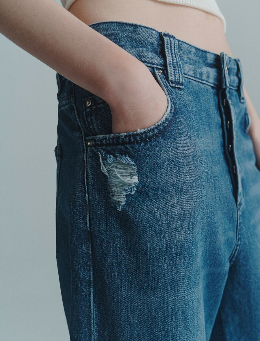 - Jean en denim pur coton, créé en collaboration avec Candiani Denim.