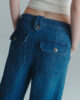 • Poches latérales obliques et poches arrière plaquées avec bouton métallique griffé