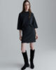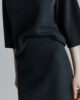 Jupe en maille de laine mérinos compacte, coupe droite aux hanches et longueur mi-cuisse. Elle s’accorde parfaitement avec le chemisier assorti pour un look chic et confortable.