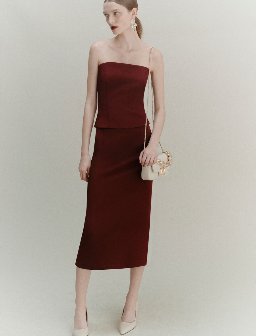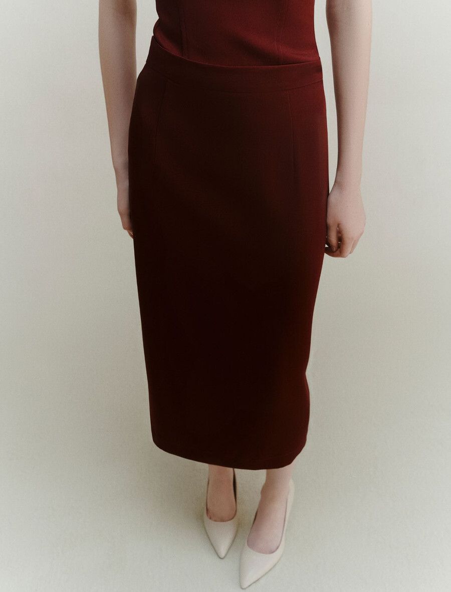 Un classique revisité : la nouvelle version contemporaine de la jupe mi-mollet en satin, à la coupe droite et à la taille marquée. La fente arrière assure une totale liberté de mouvement.