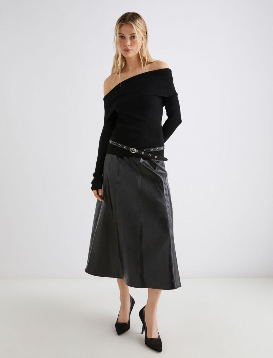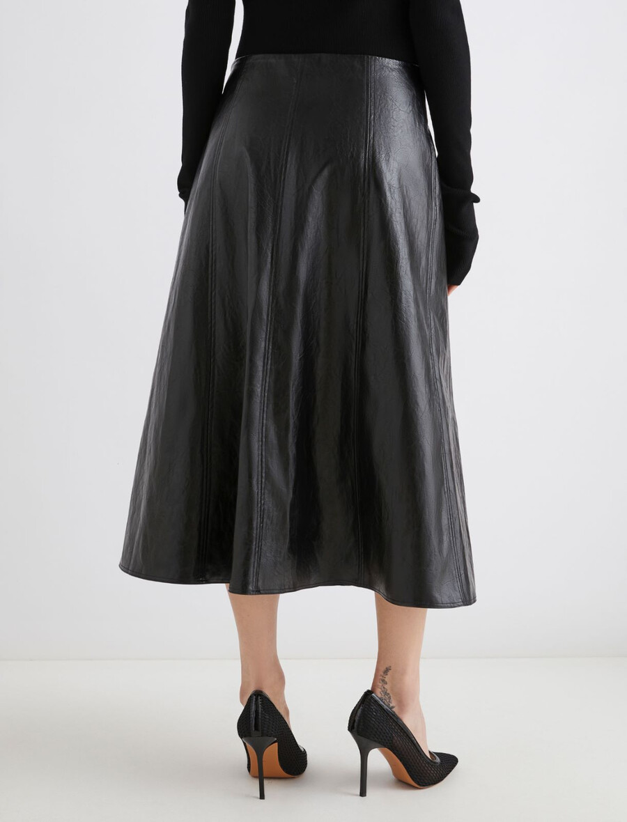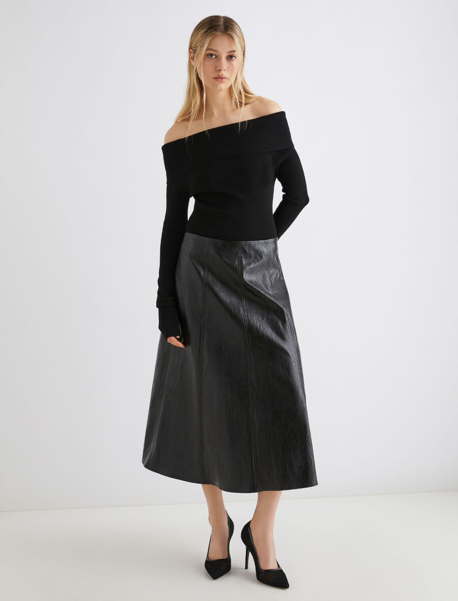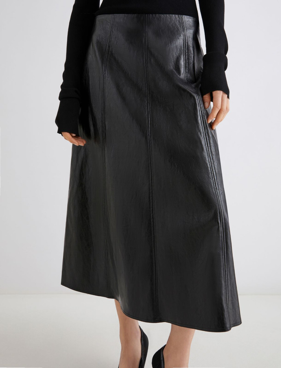 Une coupe évasée et des empiècements ornés de surpiqûres apparentes : cette nouvelle jupe allie une silhouette féminine classique à un tissu sergé enduit à l’esprit urbain. Portez-la avec le trench-coat assorti pour un mélange de couleurs et de matières surprenant.