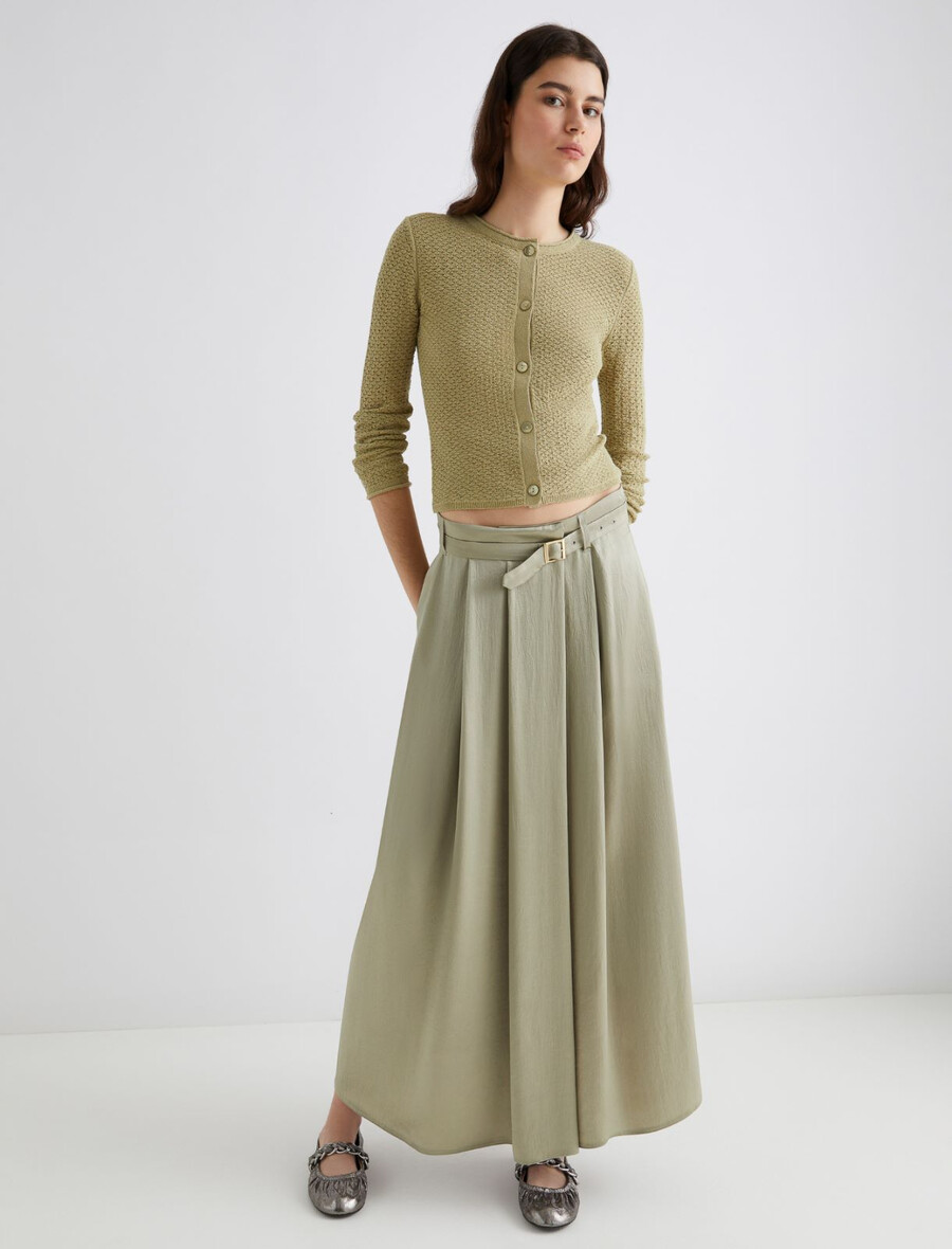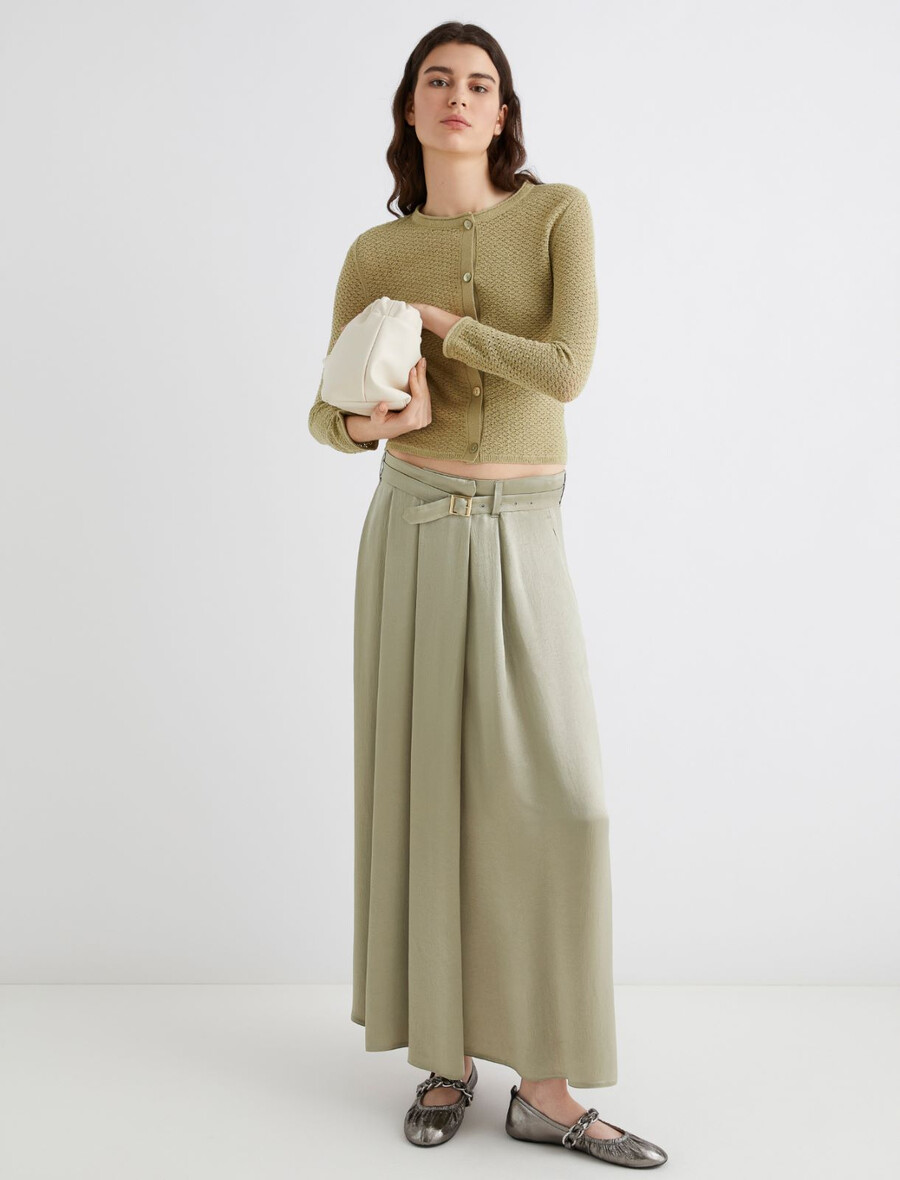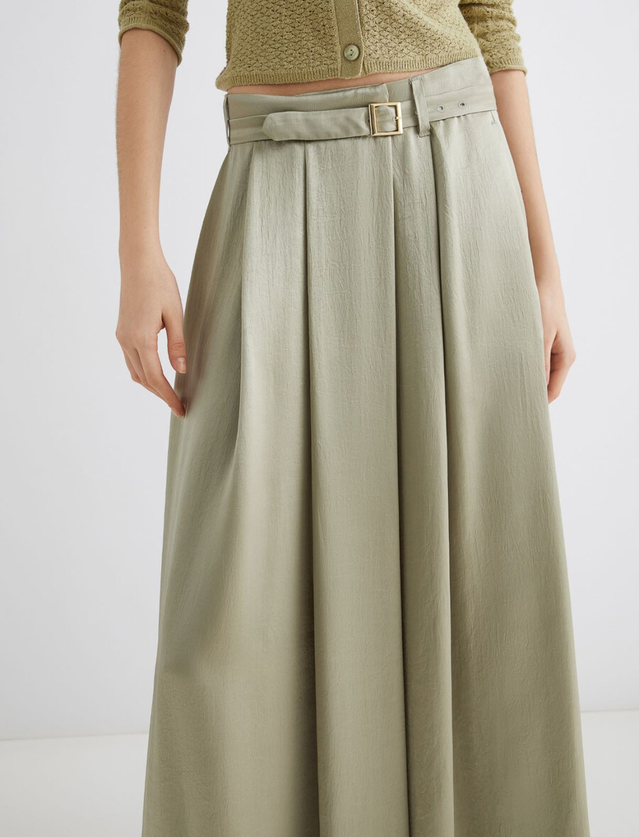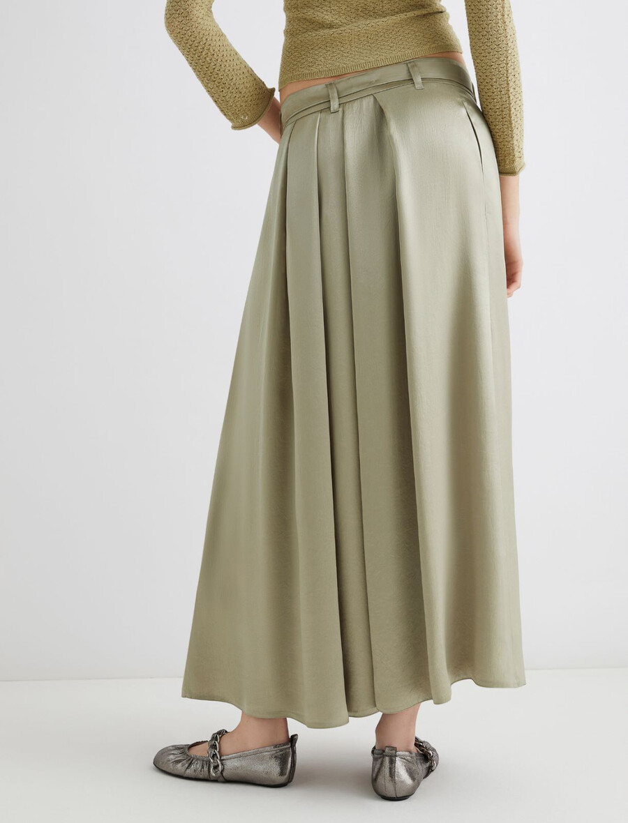 Avec ses plis latéraux et sa ceinture à la taille, cette jupe est une véritable nouveauté dans votre garde-robe : ce modèle polyvalent et décontracté, féminin et fonctionnel, se prête à la création d’innombrables looks avec des pulls et des blouses vaporeuses.