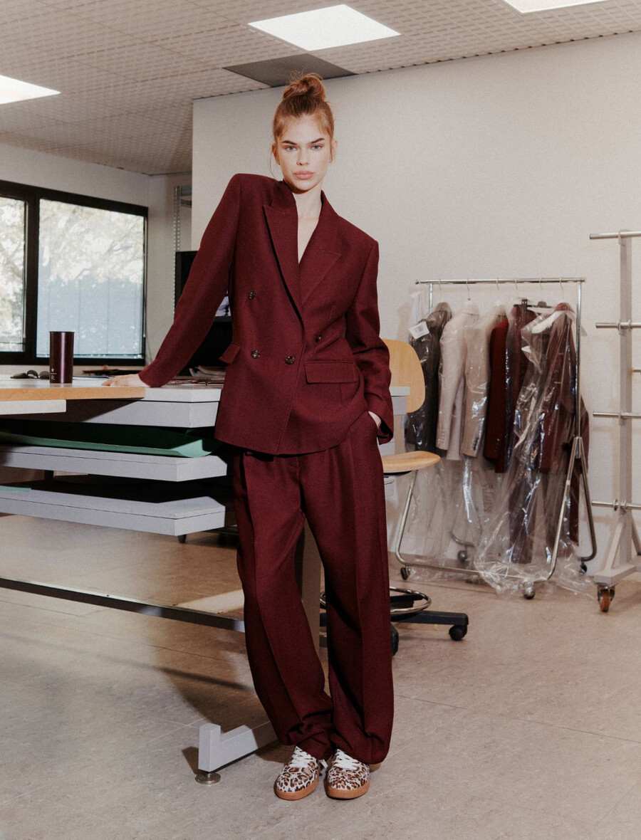 Pantalon à l’esprit urbain et à la coupe ample légèrement resserrée à l’ourlet pour une silhouette avant-gardiste. À associer avec le blazer assorti pour jouer avec les coupes et les volumes contemporains.