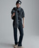 • Pantalon en denim stretch effet taureau.