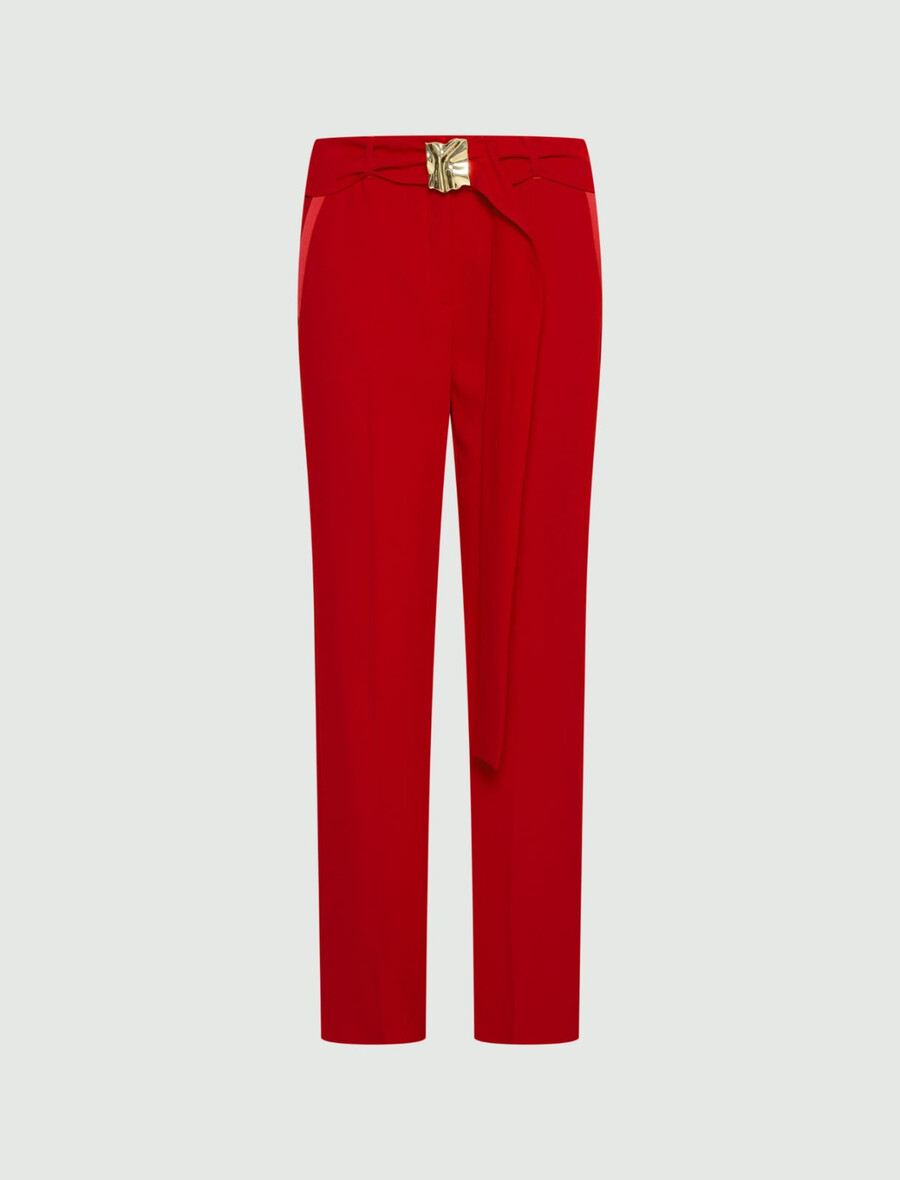 - Pantalon en crêpe satiné avec détails en satin.