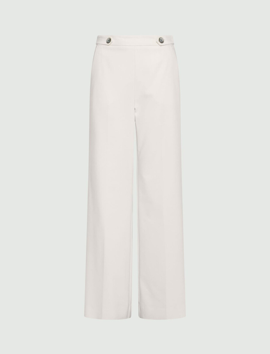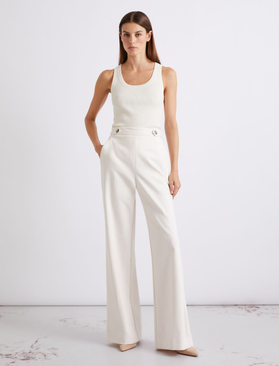 Un pantalon stretch décontracté, à la fois chic et urbain : un indispensable du printemps, ultra-polyvalent avec un t-shirt et un manteau court léger.