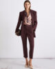 Ce pantalon en coton stretch se distingue par son allure tailleur et ses lignes nettes. Les fentes aux chevilles ajoutent une touche féminine, accentuée par des escarpins et des chevilles dénudées.