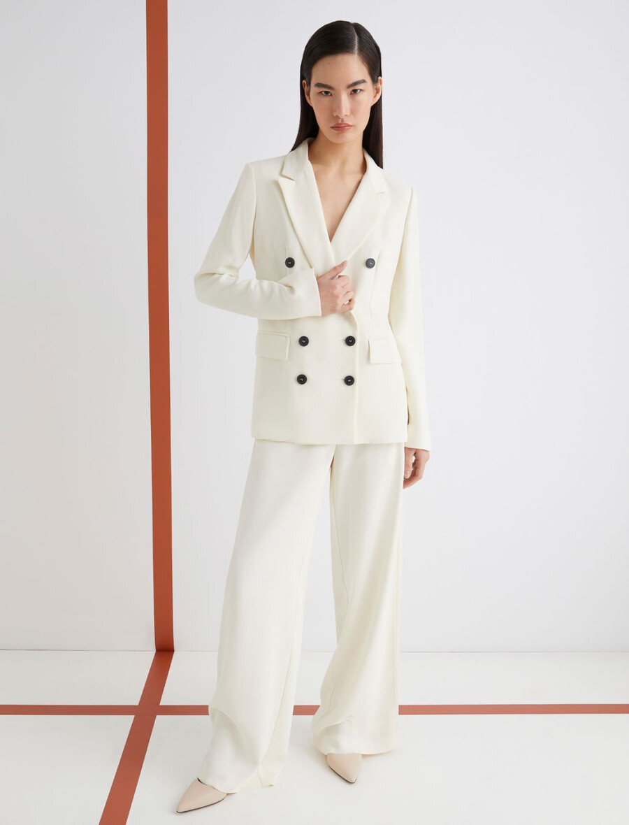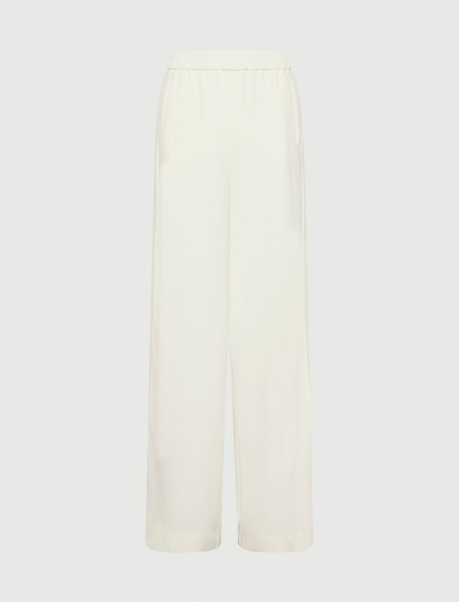 • Pantalon en crêpe satin envers avec détails en georgette.