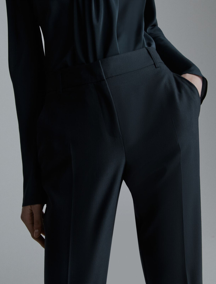 - Pantalon en gabardine de pure laine vierge.