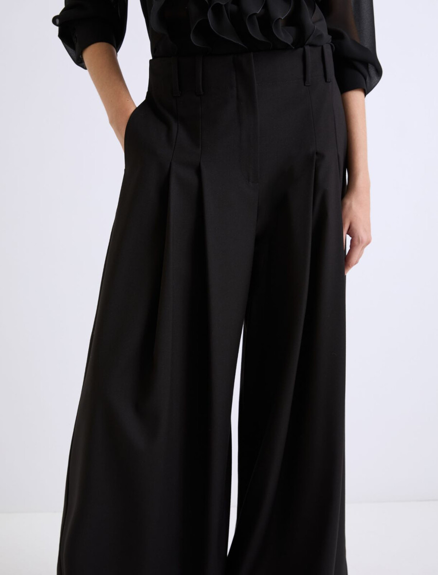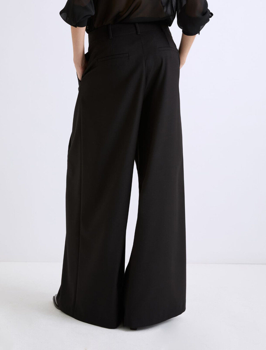 - Jambes larges avec double pli sur le devant