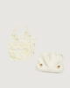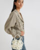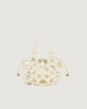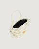 Petit par la taille, mais grand par le style : le nouveau sac seau est à mi-chemin entre l’accessoire et le bijou, orné de sphères à la finition nacrée qui forment une cage extérieure. L’intérieur comprend une pochette pratique pour vos essentiels.