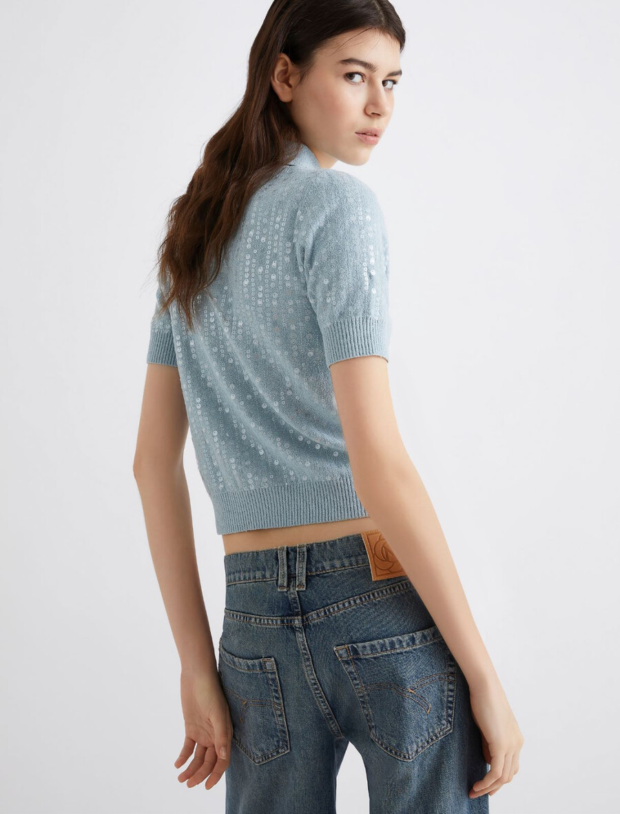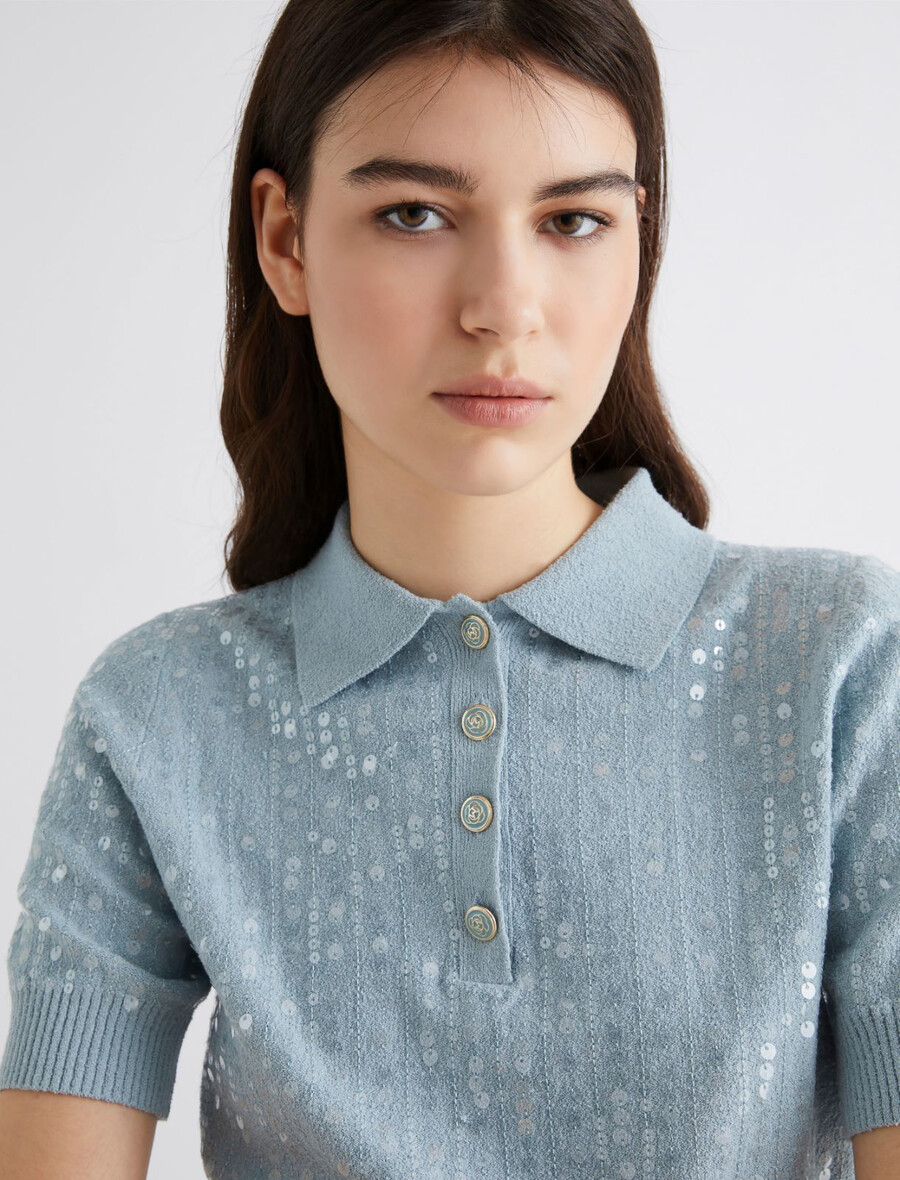 - Polo en fil bouclé de coton mélangé avec broderies de sequins